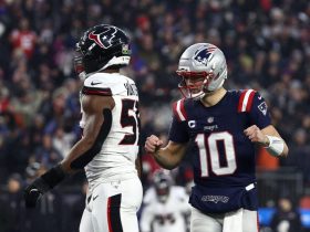 MIAMI GARDENS, FL – All Carson Beck could do was raise both hands and place them on either side of ...