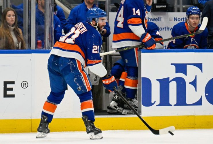 New York Islanders forward Kyle Palmieri, who picked up an assist as he limped off the ice during Friday’s game ...