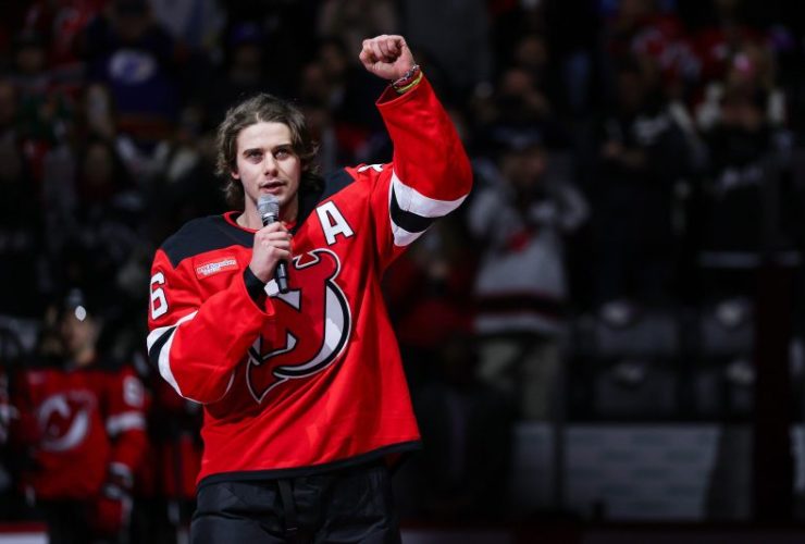 Jack Hughes received a hero’s welcome Wednesday in a ceremony held before he took the ice for the New Jersey ...