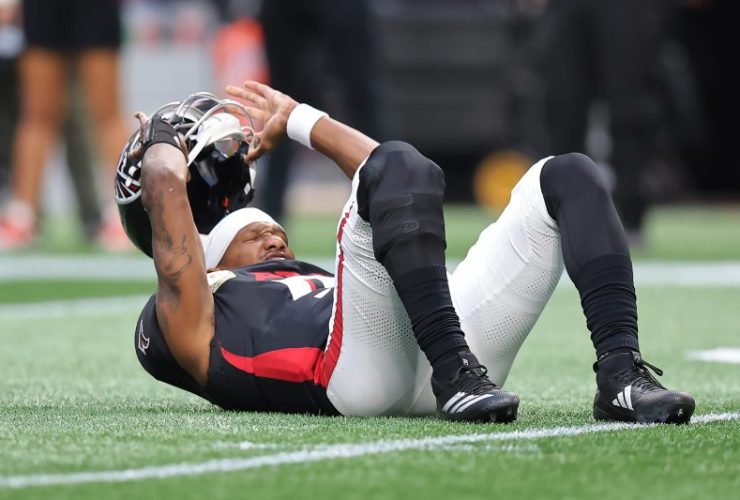 Atlanta Falcons quarterback Michael Penix Jr. left Sunday’s game against the Carolina Panthers after taking a hard hit in the ...
