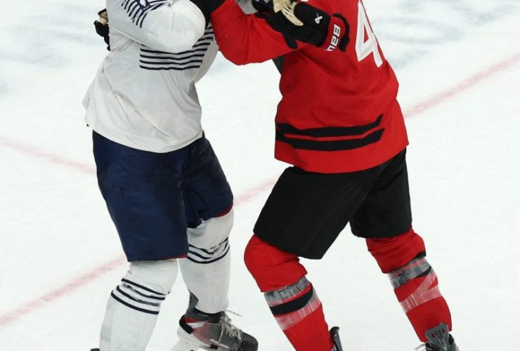 Fighting is prohibited in Olympic hockey, but there was one in Sunday’s Canada-France game. It wasn’t much of a fight, more of a wrestling match with no one punches thrown. But the International Ice Hockey Federation rules say a fighting penalty can be called if ‘players wrestle in such a manner as to make it difficult for the linespersons to ...