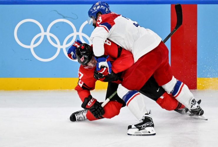Team Canada captain Sidney Crosby skated slowly toward the dressing room after a heavy check during an Olympics quarterfinal game on Wednesday, Feb. 18. He did not return to the ice with his teammates after the intermission between the second and third periods, and Hockey Canada said shortly afterward he is out for the rest of the game with a ...